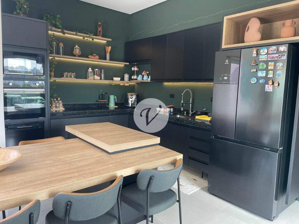 Cozinha conceito aberto com ilha central e eletros embutidos.