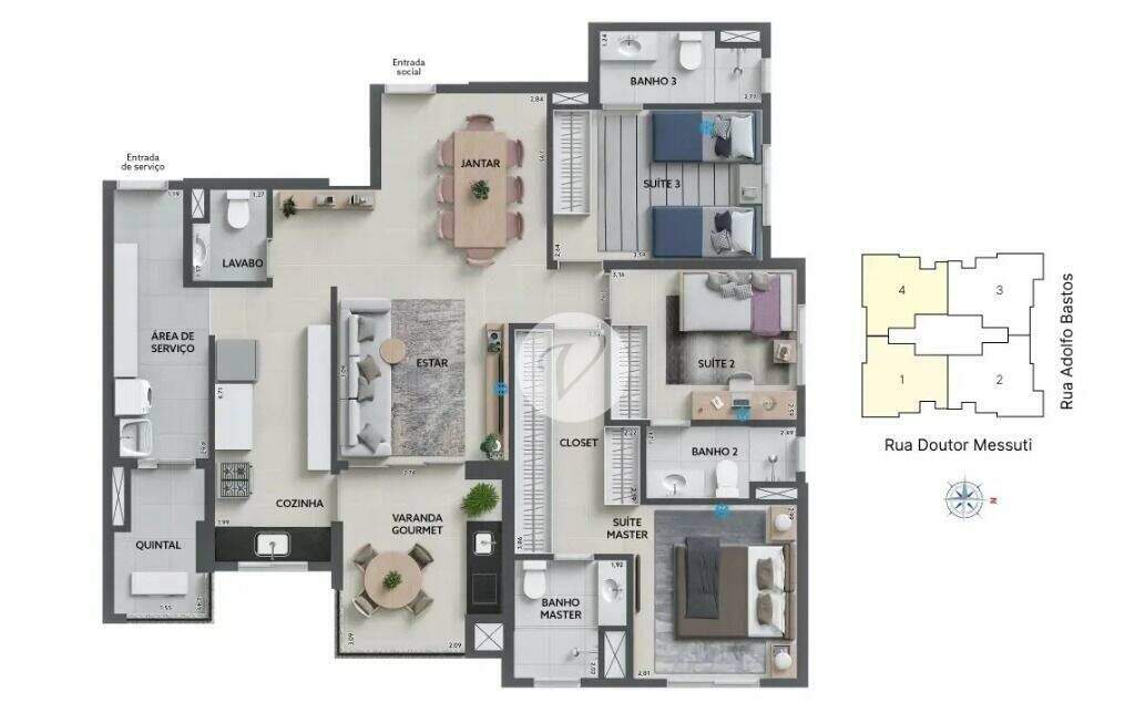 Apartamento novo, entregue em agosto, com 117 m², 3 suítes, andar alto e vista livre — padrão Patriani em localização nobre da Vila Bastos.